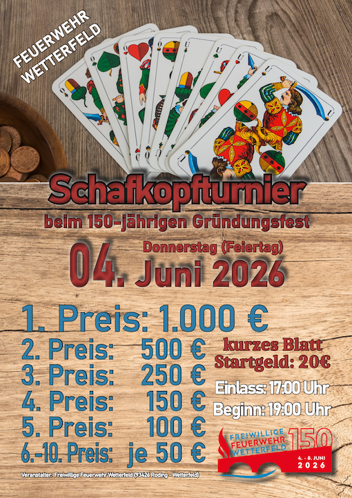 4 Runden a 20 Spiele (Startg.: € 25,00) 1. Preis € 350,00