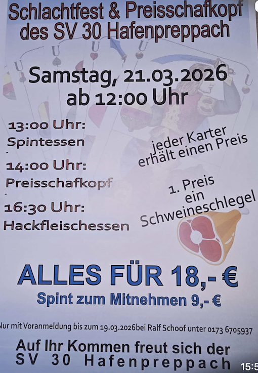 Schafkopfrennen mit Schlachtfest ab 12:00